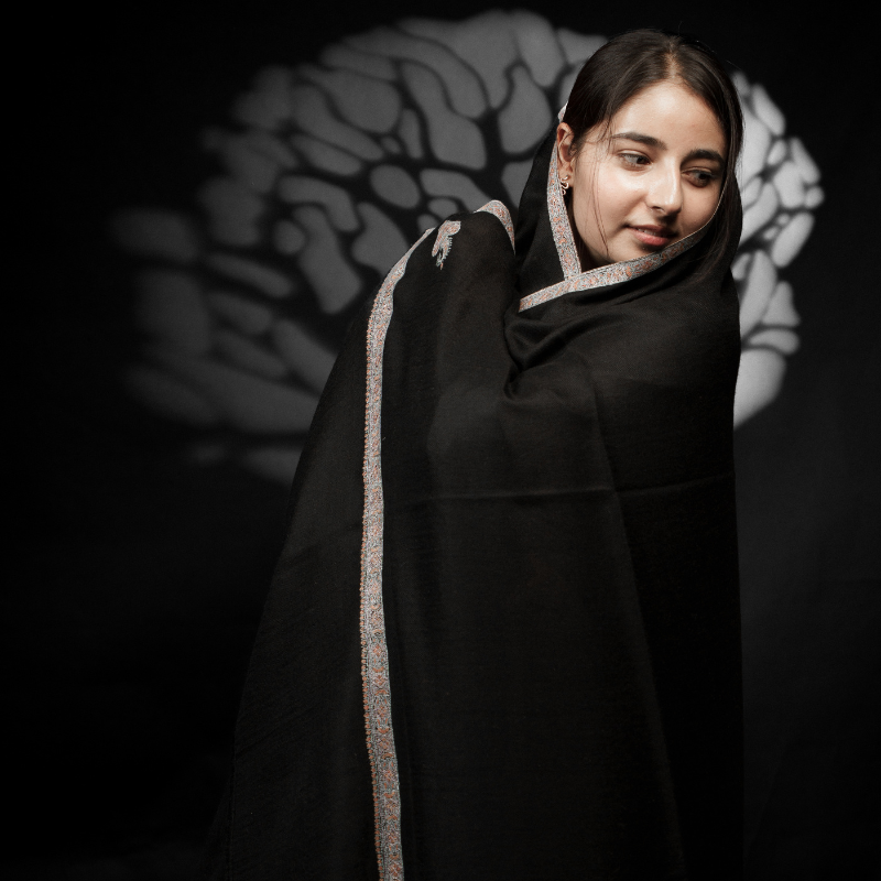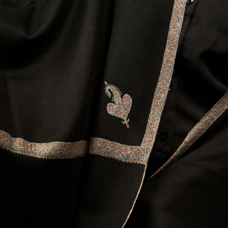 The Black Crest Embroidered Border Pashmina Shawl is a regal masterpiece that showcases the finesse of Kashmiri craftsmanship. Its deep black base is enhanced with intricate embroidered borders, adding richness and elegance to the timeless drape. Woven delicately on traditional looms, it combines warmth, softness, and luxury, making it perfect for both formal and festive wear. Accompanied by a GI tag for authenticity, it guarantees heritage and purity. 100% pure Pashmina, 100% handwoven, reflecting true artistry.