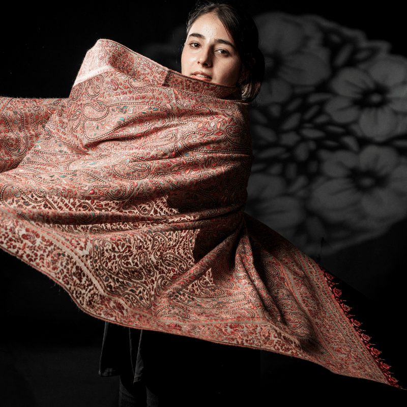 Soothing the tranquillity in the most eloquent ways, our Pashmina Shawls withstand the blessing of the Kashmir Valley. The luxury of paisleys with florets surrounds the reflection of memory. We work together with the artisans of Valley to reside in the authenticity of Pashmina Art.
