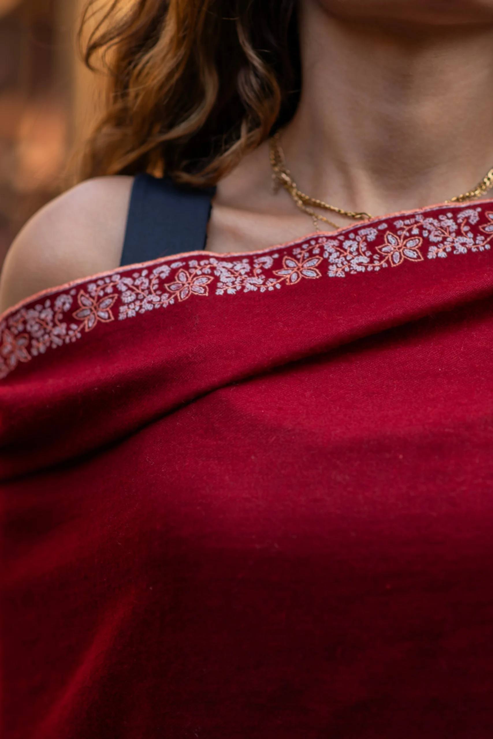 Brick Red wrap with hand embrodery on edges