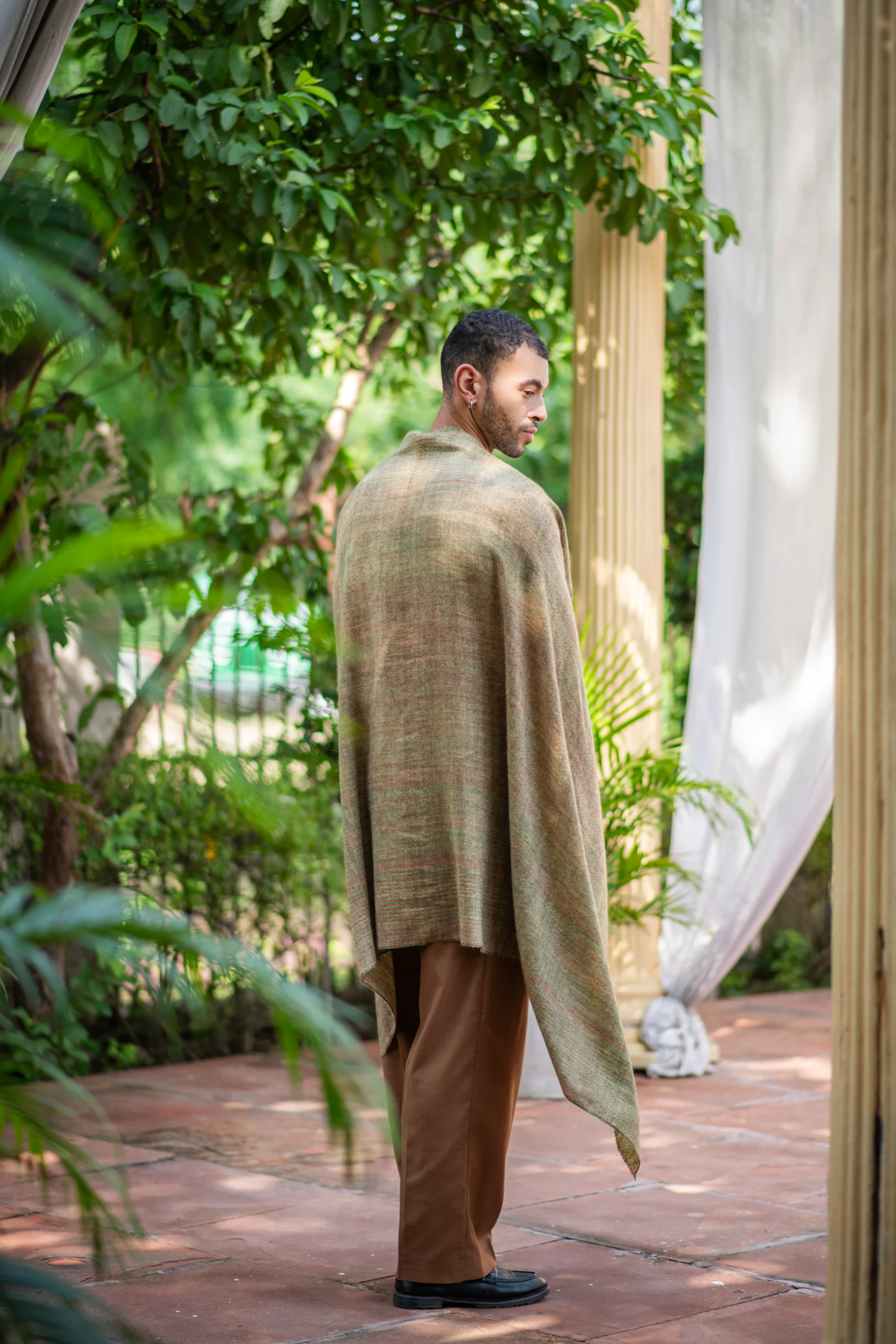 Grounded in earthy elegance, this shawl echoes the hues of Kashmiri soil and cedar forests. The handwoven stripes tell a tale of tradition — rich, raw, and deeply rooted.