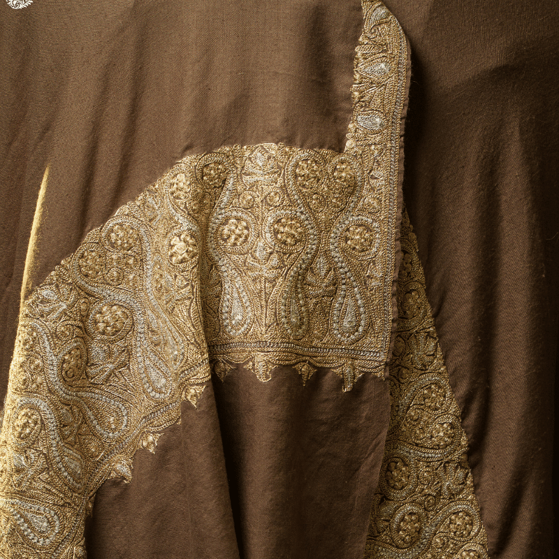 The Gilded Moonlight Tilla Pashmina Shawl is a celebration of Kashmiri artistry, where delicate Zari Tilla embroidery glows like moonlight over fine Pashmina. Its enchanting craftsmanship brings alive a rare harmony of shimmer and warmth, making it perfect for refined gatherings. With a lab-tested certificate for authenticity, it assures genuine heritage value. Handwoven to perfection, this piece stands as a timeless creation. 100% pure Pashmina, 100% handwoven, it reflects both sophistication and cultural legacy.