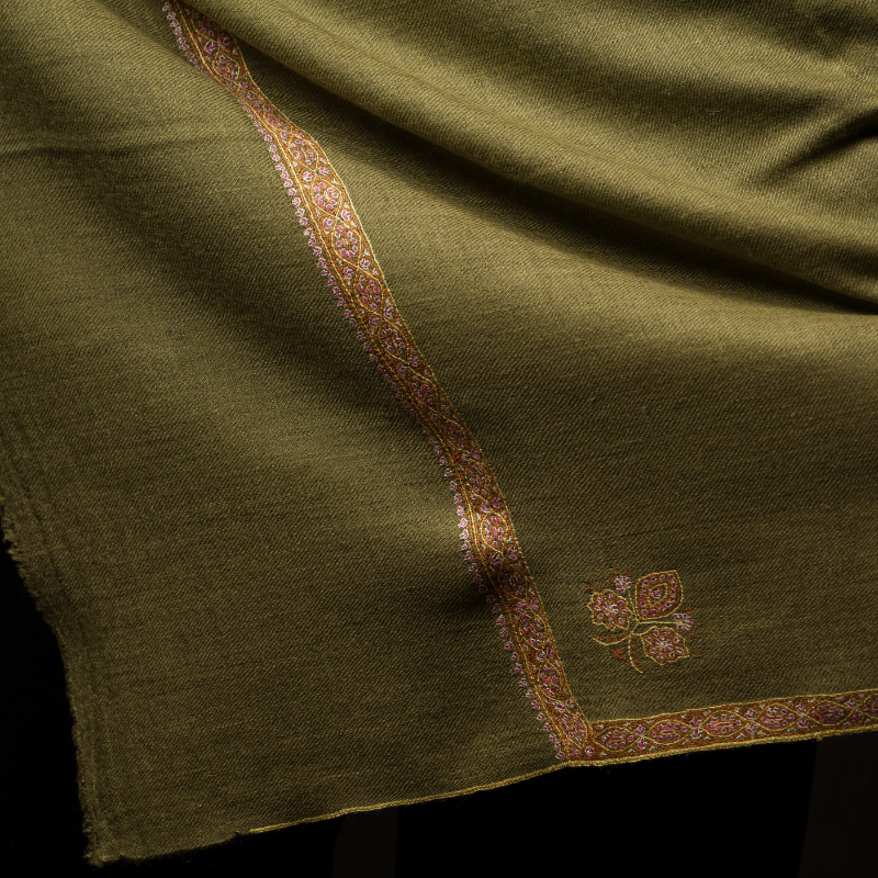 The Green Crest Embroidered Border Pashmina Shawl embodies the elegance of Kashmiri tradition with its rich green base and finely detailed embroidered borders. Handwoven on traditional looms, it carries a graceful balance of heritage and luxury, offering both warmth and sophistication. Perfect for elevating festive attire or adding refinement to everyday style, this shawl is a timeless keepsake. Comes with a GI tag for authenticity. 100% pure Pashmina, 100% handwoven, crafted with unmatched finesse.