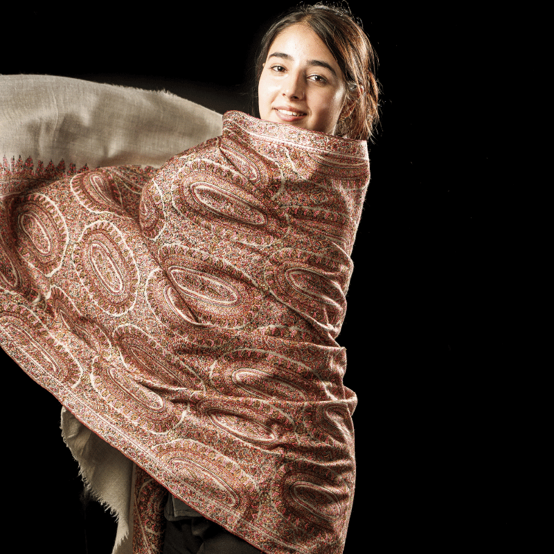 Soothing the tranquillity in the most eloquent ways, our Pashmina Shawls withstand the blessing of the Kashmir Valley. The luxury of paisleys with florets surrounds the reflection of memory. We work together with the artisans of Valley to reside in the authenticity of Pashmina Art.