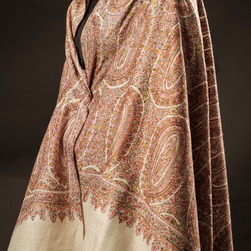 The word “Pashmina” is derived from the Persian word “pashm,” which means wool, and it reflects the Persian influence on the trade of these shawls centuries ago.