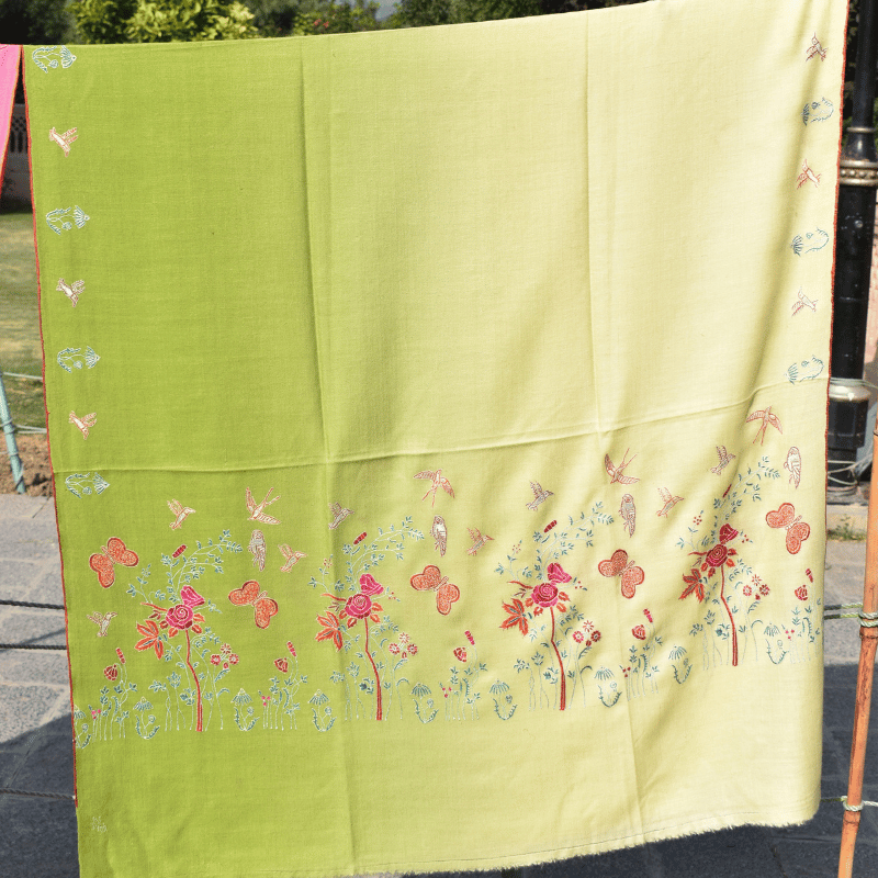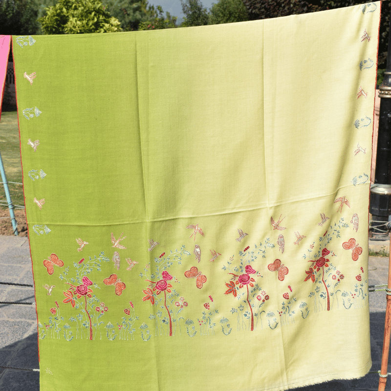 The Lime Citrus Glow Pashmina Wrap shines with refreshing ombre shades, moving seamlessly from zesty lime to mellow citrus tones. Its vibrant yet subtle gradient makes it a versatile accessory that brightens any wardrobe while staying refined. Created from 100% pure pashmina, 100% handwoven with care, it carries a luxurious softness you’ll feel instantly. Bearing the GI tag, it stands as a true Kashmiri creation, combining cultural artistry with modern style for a radiant statement piece.