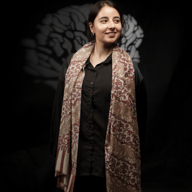 Soothing the tranquillity in the most eloquent ways, our Pashmina Shawls withstand the blessing of the Kashmir Valley. The luxury of paisleys with florets surrounds the reflection of memory. We work together with the artisans of Valley to reside in the authenticity of Pashmina Art.