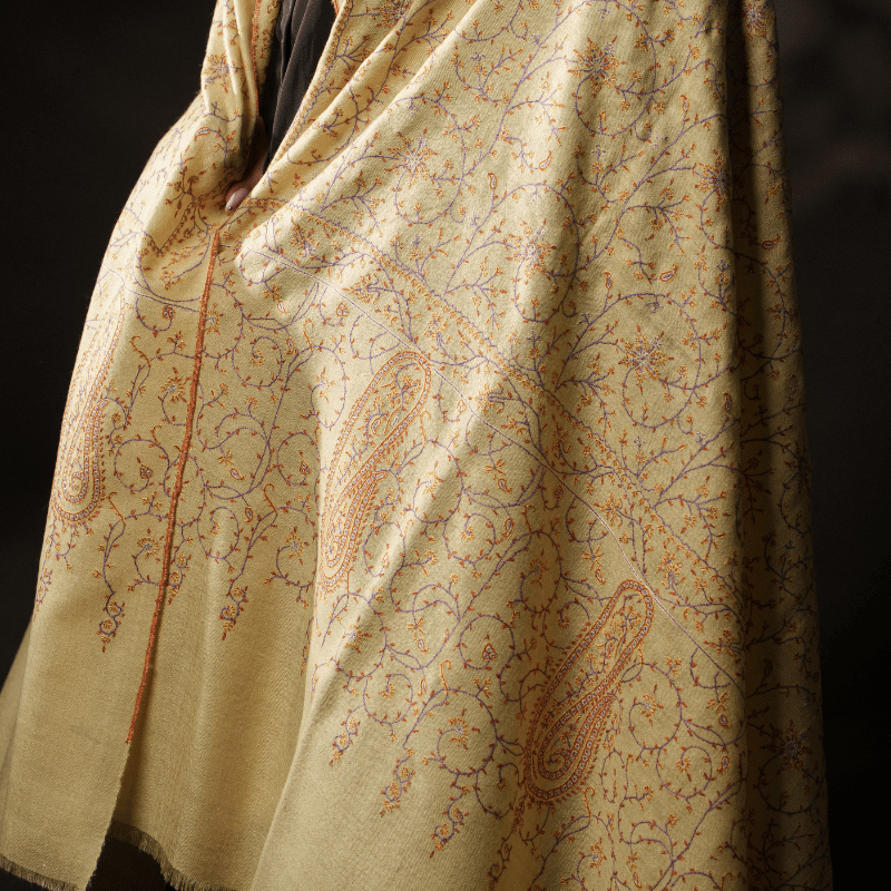 Soothing the tranquillity in the most eloquent ways, our Pashmina Shawls withstand the blessing of the Kashmir Valley. The luxury of paisleys with florets surrounds the reflection of memory. We work together with the artisans of Valley to reside in the authenticity of Pashmina Art.