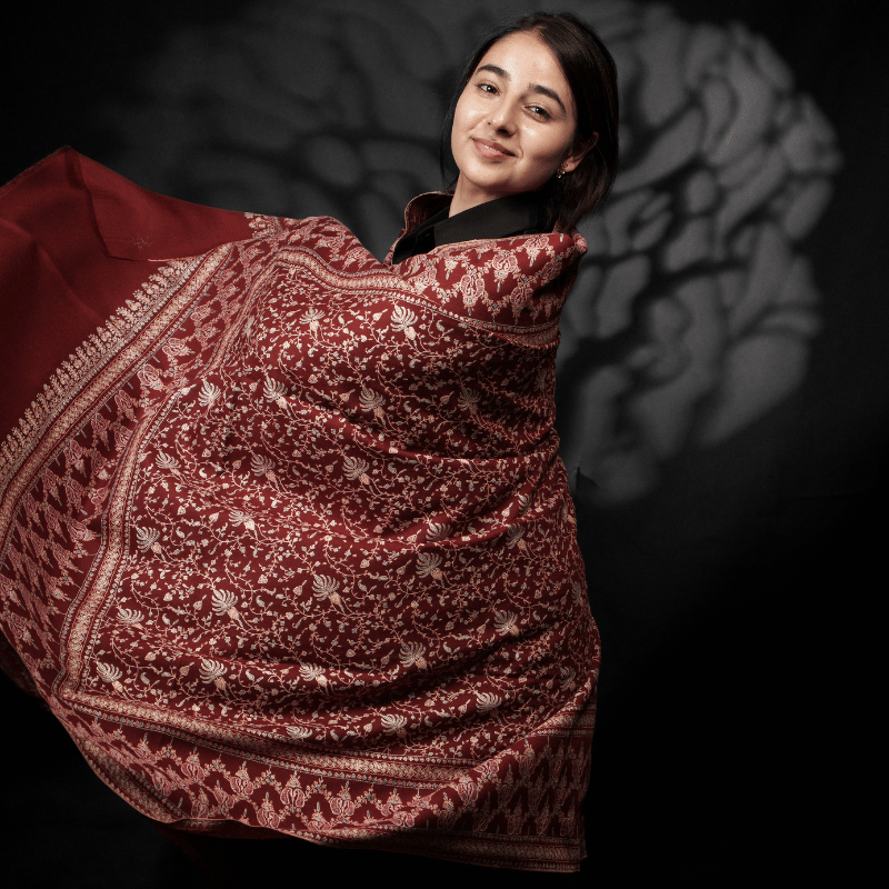 Soothing the tranquillity in the most eloquent ways, our Pashmina Shawls withstand the blessing of the Kashmir Valley. The luxury of paisleys with florets surrounds the reflection of memory. We work together with the artisans of Valley to reside in the authenticity of Pashmina Art.