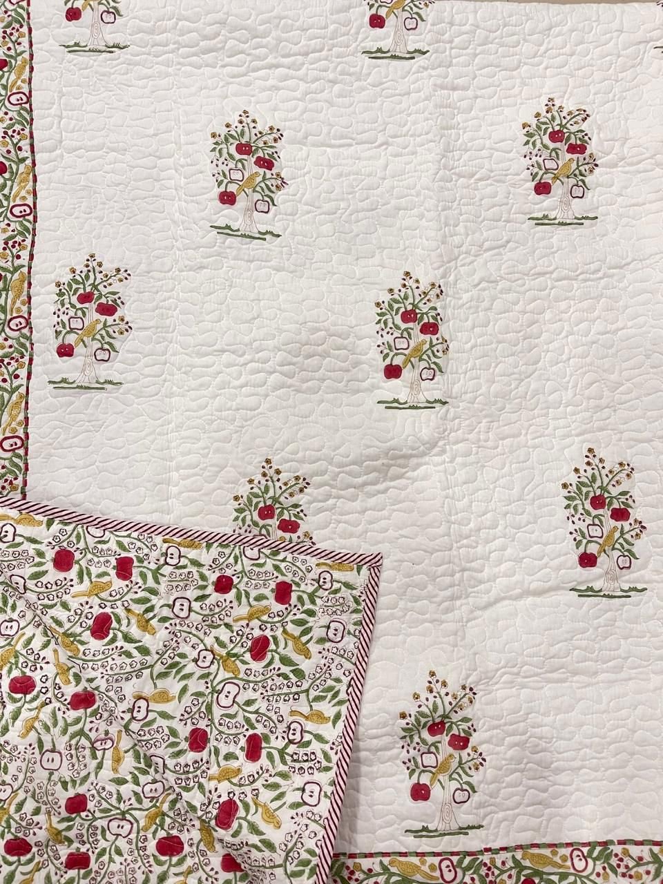 Add warmth and handcrafted elegance to your bedroom with our Handblock Printed Quilted Cotton Bed Covers, made using traditional wooden block printing techniques practiced by skilled artisans for generations.