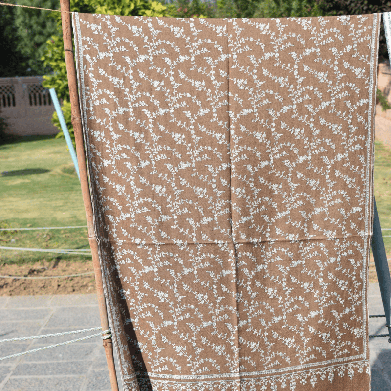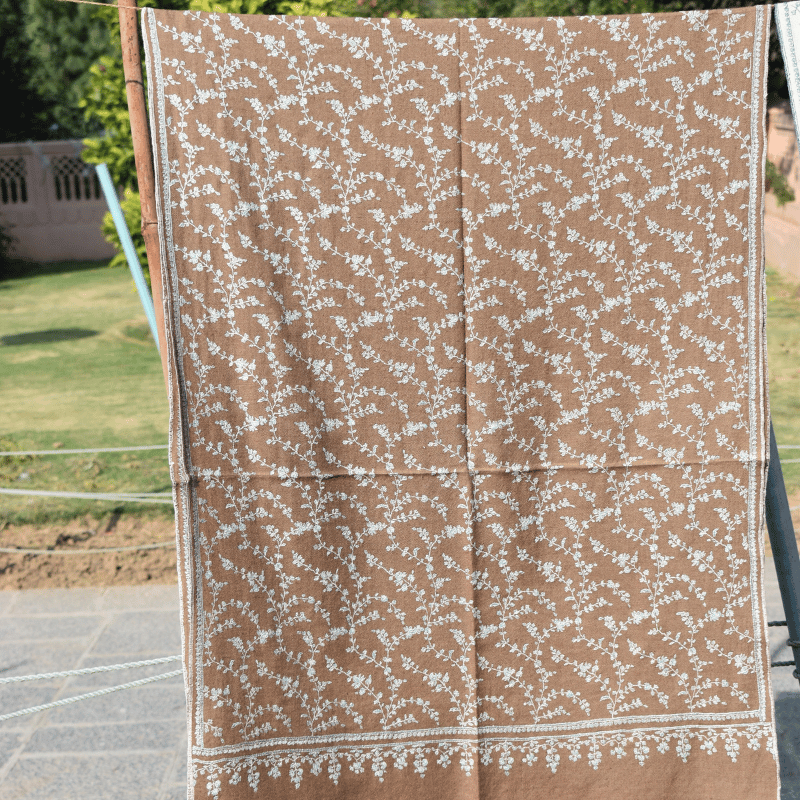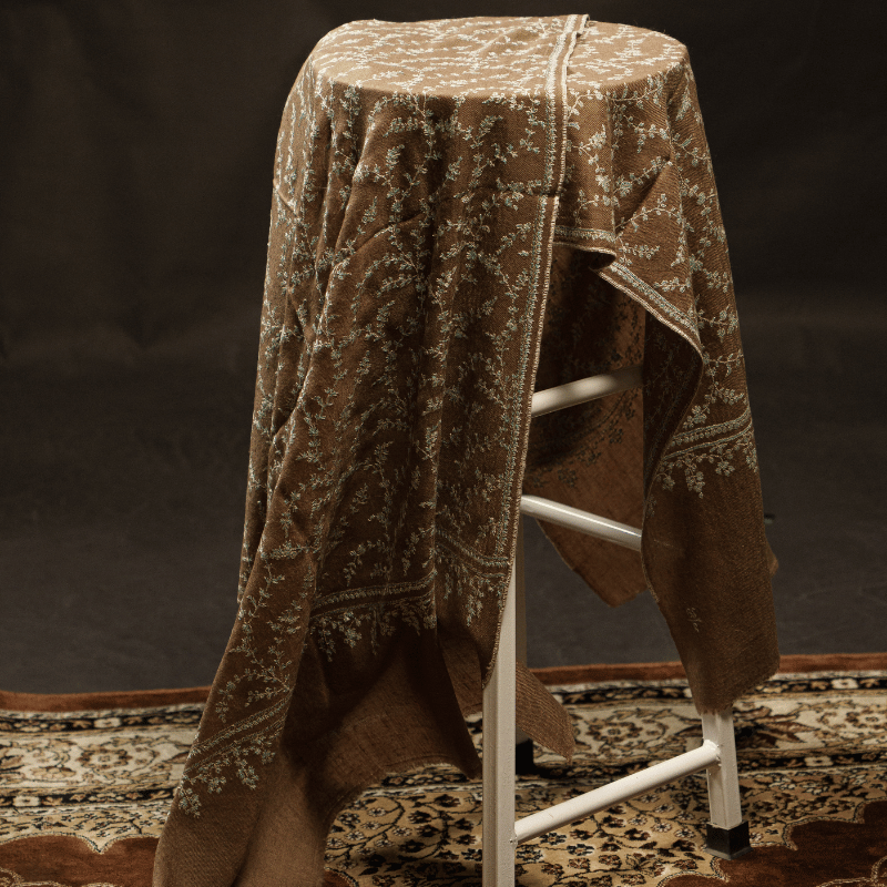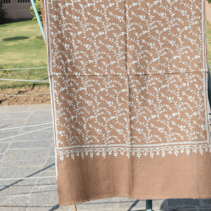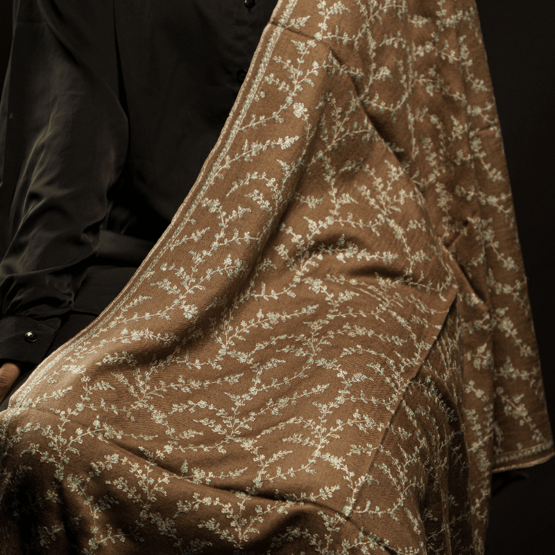 The Walnut Brown Jaal Pashmina Wrap radiates timeless allure, adorned with intricate jaal embroidery across its surface. The earthy walnut tone provides a regal backdrop, while the embroidery celebrates Kashmiri weaving artistry passed down for centuries. Luxuriously soft and featherlight, it’s perfect for festive elegance or everyday refinement. 100% pure pashmina, 100% handwoven, and GI tag certified, this wrap carries authenticity and heritage with pride.